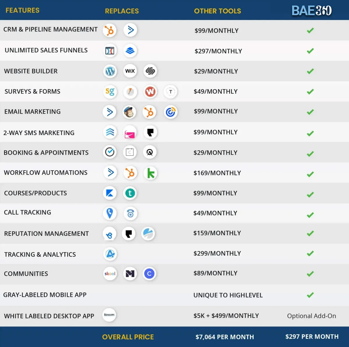 The BAE360 Sales & Marketing CRM gives you unmatched power to manage your prospects and customers, pipelines, appointments, tasks, forms, surveys and so much more from one place.
